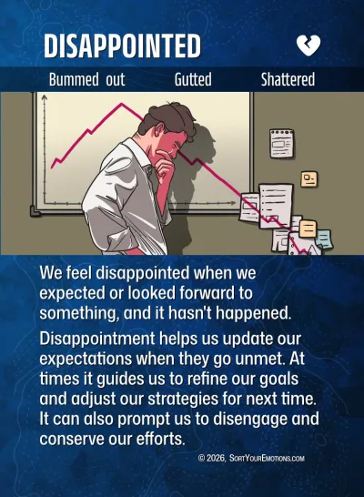 Discouraged Demoralized, Despair, Hopeless We feel discouraged when our efforts don't pay off and our confidence to try again starts to fade.